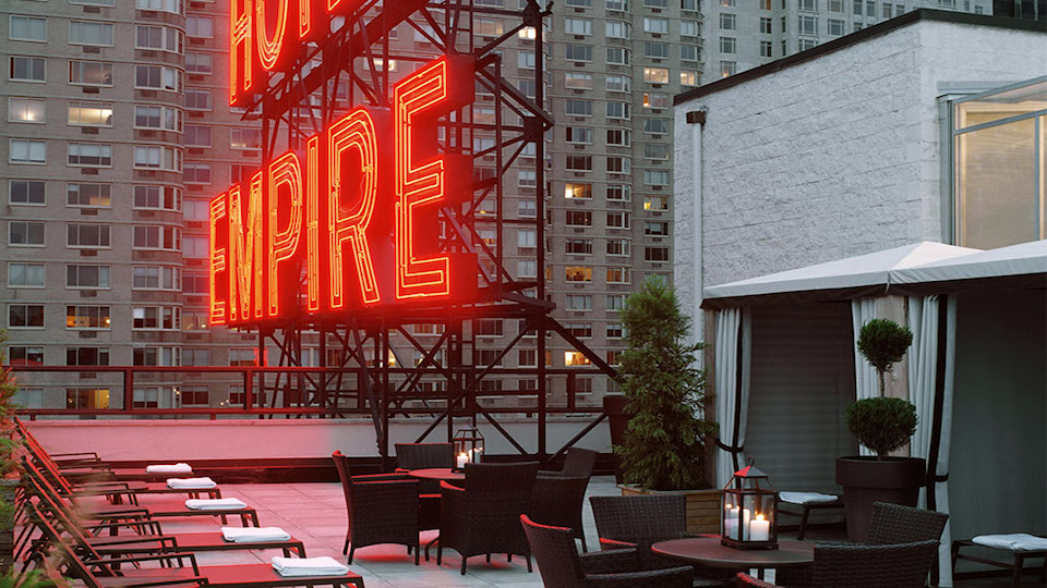 Located 12-stories above the summertime swelter of NYC, Empire Pool Deck is the latest hotel entry into the city's ever-hot rooftop lounge scene. More casual and approachable than the Gansevoort and upcoming Thompson LES, this bi-level pool deck is arranged in teak and canvas loungers around a semi-covered pool area alit in evening candlelight and house deejays. Accessed via a private elevator that opens to 180-degree views of the city, knobbier visitors can book one of the VIP cabanas equipped linen curtains, private loungers, plasma TVs and private refrigerators stocked with premium champagne of choice. The crowd varies between high-end city singles on hand for promoted events to dressy Lincoln Center members checking-out the local action before showtime.