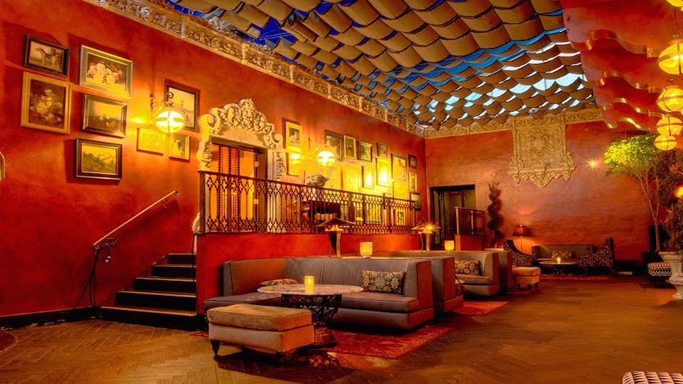 The space dates back to 1927, perfectly recreated in a deco-meets-Morocco space of extravagantly tufted-leather banquettes, honey-colored plaster walls and ebonized wood flooring. Sculpted archways dangling in vintage pendant lighting and ornate chandeliers interrupt tall-carved ceilings. Walls are adorned in art that recreates the work of Rubens and Botticelli with robust female nudes the beg to say, "Go ahead ladies, eat." And eating they can do, and not just with a haphazard snack menu available at LA's top bars. This menu is by Violet-chef Jared Simons who creates a small-plate menu of larger flavors including seared scallops and tasting of beef brisket.